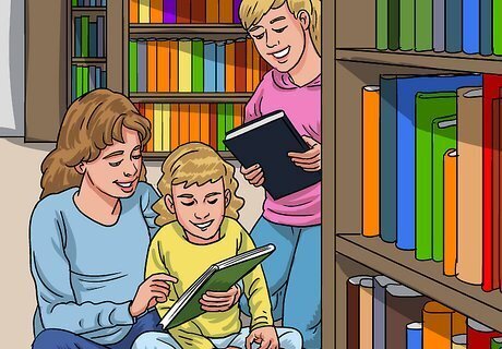 Read books. Reading can be just as fun and vivid as watching a TV show or movie. Introduce your children to stories that help them escape from everyday stress into imaginary worlds. Load everyone into the car for a weekly visit to your local library. Make reading all the more interesting by telling your kids about the books you enjoyed as a kid. Try to find them in your library or online. Plan an outing at your local library. Many libraries offer story hours and other fun activities and events. Make it even more fun by treating your kids afterwards (e.g., you might take them out for ice cream or to their favorite park).