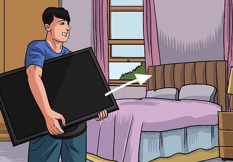 Keep screens out of sight. As the old saying goes, “Out of sight, out of mind.” If TV isn’t in their face all the time, they won’t feel as tempted to watch it. Place TVs in only a few common rooms or tuck them away in cabinets until they need to be used. There are many interesting ways to “hide” the TV. You can find systems that slide behind artwork or are pulled down from slots in bookshelves or entertainment centers. In the case of other screens, it may help to store them in a cabinet when they aren't in use so that they aren't always within eyesight.