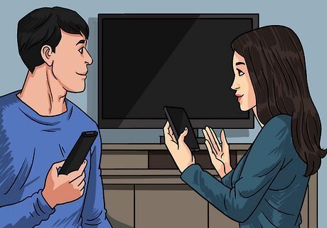 Turn off the screen when you’re not watching. For many families, TV is like the soundtrack to their lives. If the TV in your home pretty much never gets turned off, start turning it off once your program is over. Aim to be more intentional about your TV use. Think about which programs you like the most and watch only those. Press the “Power” button afterwards. The same goes for tablets and smartphones. Power these devices off when you are having family time or whenever you're not intentionally using them.