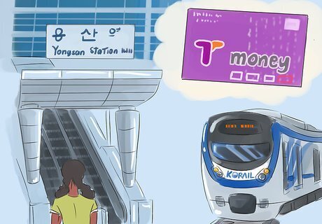 Take the Gyeongchun subway from Yongsan for an inexpensive option. If you’re taking the subway (also called the metro) to Nami Island, you’ll need to get to Gapyeong station first. The Gyeongchun Line takes 90 to 120 minutes to get to Gapyeong Station and costs 2,350 Korean won ($2.08 USD). If you’re flying into Incheon International Airport or Gimpo International Airport, you can take the subway from the airport to Yongsan Station. Rechargeable smart cards, called T-money, are often used to pay for transportation in and around Seoul. These cards can be bought and loaded with credit at the airport, subway stations, and convenience stores for 4,000 won ($3.53).