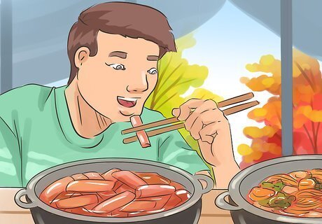 Enjoy spicy Korean food like tteok-bokki and dakgalbi. Tteok-bokki is a spicy rice cake and a common Korean street food. You can find tteok-bokki at Yeongajiga Lunch Box. Another popular dish on Nami Island is dakgalbi, a spicy chicken and vegetable stir fry. It’s available at Seomhyanggi. Nami Island has plenty of other food and drink options, like pizza, sandwiches, and coffee.