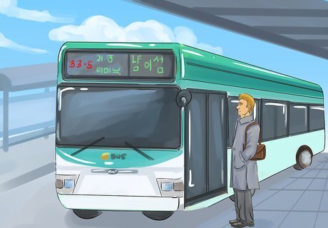 Take the city bus to Nami Island for a less expensive option. A city bus travels from Gapyeong Station to Nami Island about every half hour. You can take the 33-5 or 33-36 city bus. A bus ride costs 1250 Korean won ($1.10) and takes 5 to 10 minutes to arrive in Nami Island. You can purchase bus tickets at Gapyeong Station using won or a rechargeable T-money card.