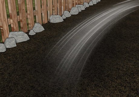 Improve drainage by breaking down clay in your soil. If your soil isn’t draining quickly enough, there may be too much clay in it. Try breaking down the clay by mixing in a combination of natural compost, dead leaves, wood chips, tree bark, and about 15% horticultural sand. Dig down about a foot deep (0.3 m) and rake about six inches (15.24 cm) worth of the mixture into your soil. You can buy the materials necessary for soil improvement online or at a local nursery.