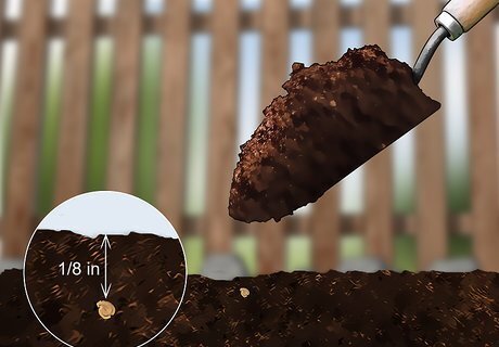 Cover the seeds with ⅛ inch (3 mm) of gardening soil. Purchase gardening soil online or at a local nursery. Sprinkle just a small amount on top of the seeds. The seeds should be just barely covered. While you can just use the regular soil from your garden, a gardening soil may work better. It can add some extra nutrients that may help the seeds germinate.