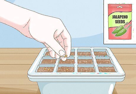 Purchase jalapeno seeds or use seeds from your own jalapenos. You can find jalapeno pepper seeds at a garden or home improvement store, as well as online. If you already have a jalapeno plant, you can cut open a mature pepper and use those seeds for planting.