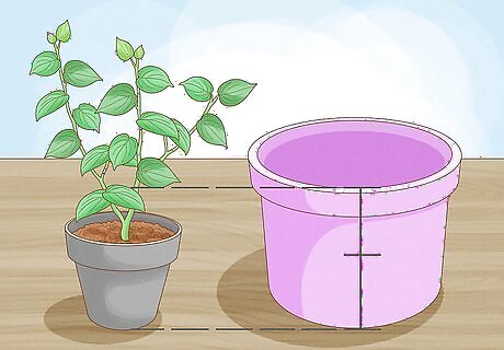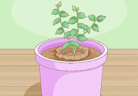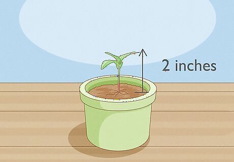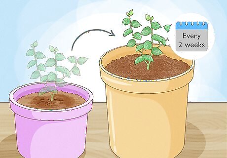 Transfer the plant to a larger pot when it’s at least 2 inches (5.1 cm) tall. When it has reached this height, it’s strong enough to be moved to a larger pot for more growing space. Use nutrient-rich potting soil when you transfer the plant, and make sure to give it full sunlight and plenty of water. Another way to tell if the plant is ready to be repotted is to look for at least 4 leaves.
