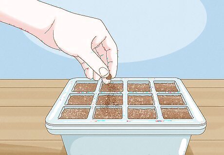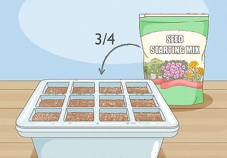 Fill a seed tray with seed-starting mix. You can find a seed-starting mix at your local garden or home improvement store, as well as seed trays perfect for starting small seedlings. Fill each space in the seed tray about ¾ of the way full with the soil.