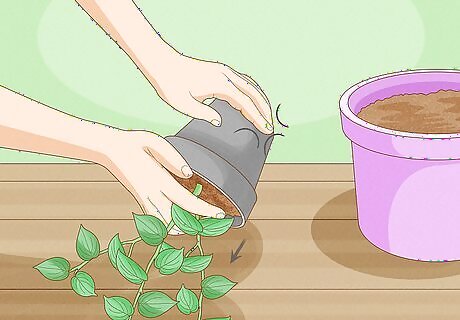 Water the plant after you've added soil. The water will help compress the soil naturally so you can see how much more soil you need to add. You can use a cup or small watering can to dampen the soil.