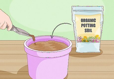 Fill the pot with organic potting soil. You can find organic potting soil at your local garden or home improvement store. Fill the pot at least halfway full of potting soil to start with, and then you can rearrange the soil once you add in the plant. You can add a little bit of compost to the soil for nutrients, if desired.