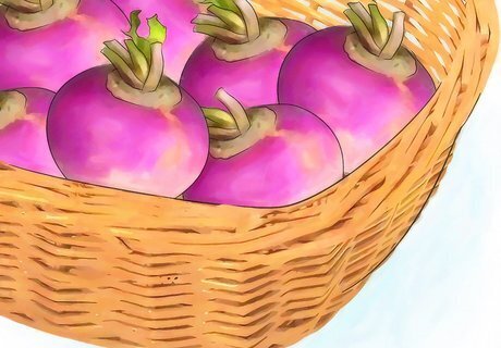 Store in cool temperatures. When packed and stored in a cool place, harvested turnips will usually last for three to four months. Consider keeping them in a basement, root cellar, or shed and covering them with straw. Twist off the tops, leaving 1/2 inch (1.25 cm) of stem before storing the turnips. Do not rinse off any soil since it can actually help protect the roots wile they remain in storage. You might be able to leave your fall crop in the ground until early winter by covering them with a thick mulch, but pull them out before the soil freezes and hardens. Turnips can also be stored in the refrigerator.