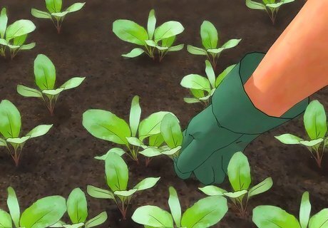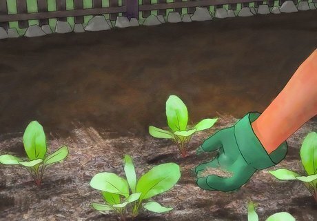 Add plenty of mulch. When the plants reach a height of 5 inches (12.7 cm), add a 2-inch (5-cm) layer of mulch around the greens. Mulch holds in moisture, and even moisture can encourage better growth and flavor. Additionally, mulch can help control and limit the number of weeds in your garden.