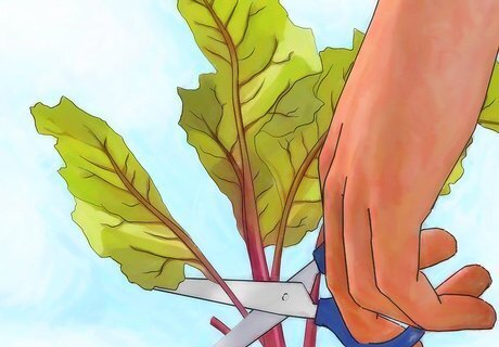 Harvest the greens early on. As a general rule, you can harvest greens as soon as they are large enough to pick. Generally, this is when the green reach a height between 4 to 6 inches (10 to 15 cm). As long as the growing points or nodes are not removed, the greens should regrow after harvesting them. If you want to harvest leaves and roots from the same plant, only remove two or three leaves per plant. If you remove all of the leaves, the root will die.