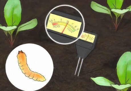Watch out for pests and fungi. Root maggots and flea beetles are among the most common pests you'll need to worry about, while powdery mildew and downy mildew tend to be the most common forms of fungi. Root maggots are most often a problem when you grow turnips in soil that nurtured radishes, turnips, or rutabagas the previous year. To prevent root maggot infestations, rotate your crops and treat the soil with a food-safe insecticide labeled for use against root maggots. Keeping the soil pH above 6.0 can prevent most problems with mildew and other fungi, like club root. Periodically test the soil pH with a pH testing kit or by taking it to a local university extension office. Typically speaking, once turnip roots become infested by pests or fungi, there is not much you can do to save them. Your best option is to remove the infected plant and treat the soil as needed to destroy as much of the pest or fungi as possible. You may or may not be able to recover the rest of your turnip crop.