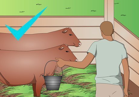 Enter the pasture where the cows are grazing. Move quietly and calmly among them, taking your time to gently scatter the seeds around their feet and over the whole area of the pasture. The cows will push the seed into the soil with their hooves and naturally fertilize the area with the waste they excrete.