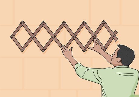 Draw a level line on the wall equal to the distance between the hangers. Go to the spot where you want to hang the rack. Hold a ruler or straight edge against the wall and lightly draw a straight line in pencil equal to the distance between the 2 hangers. Check the line with a level to make sure it’s even. The most common spot for an accordion rack is just inside the front door so you can hang your bags, keys, or light jackets. Make sure it’s far enough away so the door won’t hit the rack. Make the rack roughly shoulder-height of an average person so your guests can reach it.
