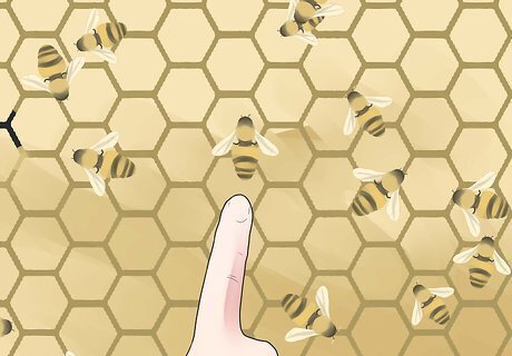 Try to spot which bee is the queen. She is slightly bigger than the others and probably won't fly. She may also have a greenish-blue spot on her back. Don't meddle with the queen, because the other bees will try to stay wherever she is.