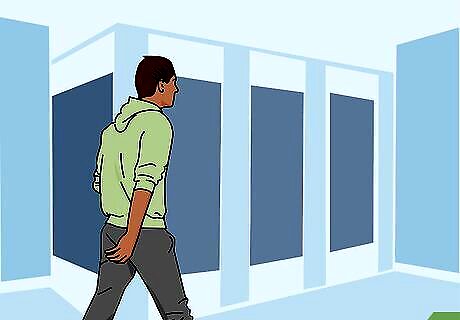 Choose the bathroom with the most privacy. This might involve a little searching, and if you don't think you have time, obviously go for the first one you see. If you are at a friend's house you might use the upstairs bathroom. In a mall, you might choose the restroom furthest from the major departments stores.