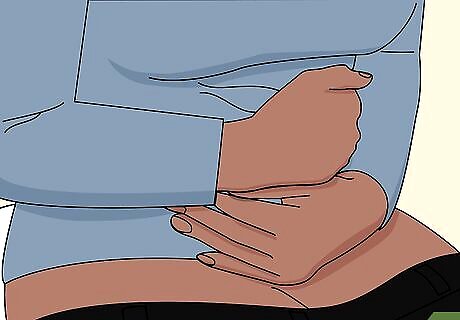 Lightly push down on your abdomen. If you are still having trouble going, place your hand on your abdomen and lightly push down. You might want to slightly lean forward while you do this.