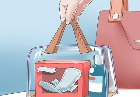 Choose the best protection for you. There are a variety of products designed for different flows and different stages of your period. The best way to work out which products are best for you is to work out what type of flow you have (light, normal or heavy.) Keep in mind, your flow can differ at different days of your period. So, try out different products until you find some which you are happy with. You should also consider your daily activities. If you are very active and/or participate in regular sporting activities, pads will be very uncomfortable so opt for a tampon or menstrual cup. Panty liners: For use just before and at the end of a period when there is very little flow, but still enough blood to stain your underwear. Usually quite discrete. Can also be used as extra protection when using a tampon. You can get both disposable and reusable panty liners. Wingless pads: For use during your period. Come in a range of absorbencies so there should always be something to suit you. Usually quite discrete except the higher absorbency pads are longer and therefore may be harder to hide with clothes like leggings or tight pants. You can sometimes get leaking over the sides of the pad. Winged pads: The same as wingless pads, but with wings that fold under your underwear to prevent movement and spillage over the sides of your underwear. Non-applicator tampons: Secure, and few leaks as long as you have the right absorbency. Smaller and therefore more discreet than pads and applicator tampons. Can take some practice to insert properly. Must have clean hands before using. Must change after at least four hours because they're linked to an illness - Toxic Shock Syndrome. Applicator tampons: Easier to insert thanks to the applicator. Less discreet although some are in smaller packaging than others. Come in a heavier absorbency than non-applicator tampons. Should still have clean hands before using, but it's less of a risk if you don't. Must be changed within four hours due to TSS. You can also use a reusable applicators with non-applicator tampons. Menstrual Cups: Menstrual cups are made of silicone, rubber or TPP. They are folded and inserted into the vagina where they collect the menstrual blood. When it's time to change it, you empty into the toilet, rinse it and reinsert it. They can be worn for 12 hours and have no reported link to Toxic Shock Syndrome. Reusable Menstrual Pads: Work the same way as normal or winged pads, but you wash them and reuse them. Come in any shape or length you want and come in a range of fabrics. Look for 'wicking' top fabrics to feel dry. "Period Underwear: Like regular underwear, but made for periods. They come in different absorbencies and sizes and can be useful for when your period is not at its heaviest. It can also be used when you think you period is approaching, or paired with a tampon or menstrual cup for extra security. They can be worn at any time of the month, even when you are not on your period.