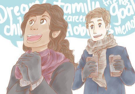 Discuss what you want out of life. You and your partner may have gotten to different places in life. You may want the things you used to, which means you may not have the same goals anymore as he does. Talk about what you want out of life, what your plans are, and what goals you have for your life. Focus on goals that you both share. Sharing common goals can help you both work towards something together, which can be fulfilling and make you closer. For example, tell your boyfriend, "I really want to travel to exotic places. What about you?" or "My goal is to get an advanced degree. What are your career aspirations?"
