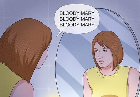 Play a classic scary sleepover game like Bloody Mary. Lots of cultures have their own games that are meant to frighten people. Bloody Mary is a popular one where you try to summon a spirit in a dark room using a mirror. You might also be familiar with cat scratch or the fortune game. Ask your friends if they want to do scary games. If someone doesn't want to, don't force them to! Remember, you want your guests to have fun.