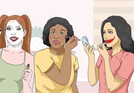 Do a scary makeup contest. Set out lots of makeup or Halloween makeup kits and give your guests about 30 minutes to come up with their own scary or monstrous look. They can work in teams or on their own. For example, divide people into teams of 2 and give everyone the same scary makeup kit. Once the time is up, have someone judge the looks and choose a winner! For a fun challenge, have your friends watch Halloween makeup tutorials online and try to recreate the looks. Want something less competitive? Set out nail polish in Halloween colors and let everyone decorate their nails.