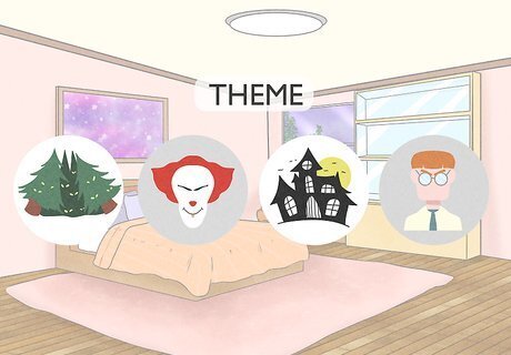 Choose a theme for your Halloween sleepover to make it more creative. Although you don't have to have a theme— you could stick to black and orange-colored decorations— a theme can help you decorate, decide on music, and pick food that ties it all together. Plus, it's easy to choose a theme based on the age group you're having at the party. Here are a few great Halloween sleepover themes: Monster theme or spooky forest theme Horror movie theme Haunted house theme Glow or dance party theme Mad scientist theme