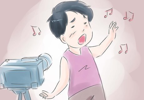 Record an album a cappella. Don't worry, Britney Spears can't sing either. Get on the computer and download free music editing software with a good range of effects. GarageBand and Audacity are common options. Open a new track and hit record. Make the sounds of a choking cat, or recite the Pledge of Allegiance in a tinny mouse voice. Do over-dubs with other weird voice sounds, or lay down some sick drums by playing the pencil on your desktop. Do a whole track of you making police siren noises with your mouth. Go back over the tracks and mess with the effects to make them sound like electric guitars and synthesizers. Play around with the reverb and echo to make it sound like alien transmissions. Have fun with it. Name your song something ridiculous, like "Moon Unit Transmission Delta" and then play it for your grandparents.