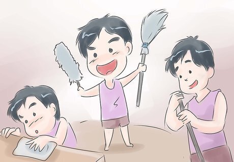 Clean. Yeah, yeah, it's no fun. But if you're alone and you've got time to kill, there are few things more productive than getting some cleaning done. And, clean spaces make happy people. Set yourself a short goal, like that you want to clean your room in less than 30 minutes, or you want to tidy the whole house in the next hour, and then move as quickly as possible to make it exciting. Put on loud or frantic music to turn it into your own fast-forward movie.