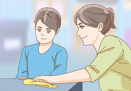 Teach your child ordinary skills. Your child should learn ordinary life skills to the best of their ability. Allow your child to shadow you while you complete household tasks, and guide them physically through the process of making food, doing laundry, and cleaning. Your child may benefit from an in-home aide.