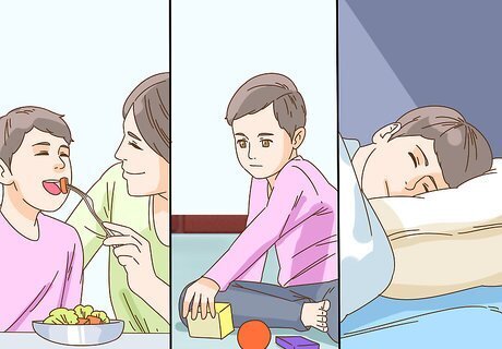 Establish consistent daily routines. Because deaf-blind children cannot see or hear things, they need tactile cues and consistent schedules so that they may anticipate the activities that make up their life. Try to start every day with the same routine, eat meals around the same time, and follow a similar sequence when undergoing common rituals. Stick to your sequences. For instance, you may naturally feed your child lunch, play with them, and then put them down for a nap. Try to stick to this so that your child knows what's happening based on what has happened before. Design your sequences to have clear beginnings and ends. For instance, you might always open the toy chest to play, and close it up to end playtime.