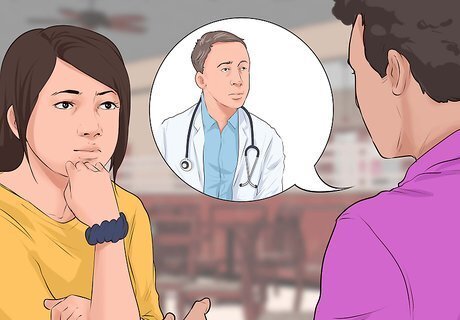 Encourage treatment. Once you've raised concerns about your loved one's health, ask whether they are willing to take these to a professional. Self-help can work for some binge eaters, but many more need more directed medical treatment. Urge your loved one to see a doctor, nutritionist, counselor, or therapist. Say something like, “Bill, would you be willing to see a nutritionist and get a professional opinion? I'm really worried you could have an eating disorder” or “Maybe you should talk to a doctor, Julie. I'm worried about your behavior.”