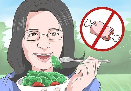 Become vegan. Becoming vegan means that you abstain from wearing, eating, or using any product that contains meat or animal by-products. By becoming vegan, you can save around 100 animal lives per year. Purchase a book on veganism to learn about transitioning into that lifestyle. Buy a cookbook to learn how to cook for your new lifestyle. Some popular cookbooks on veganism are Forks Over Knives, Thug Kitchen, and Vegan for Everybody.