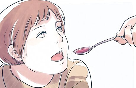 Give your child plenty of liquids. In order to help your child’s throat heal, it needs to be kept moist. At first, your child may not want to eat or drink anything because it is uncomfortable to do so, but it is important that they at least take some water. If they will not drink water, you could ask your child to suck on some ice. Give them small pieces of ice so that they do not have to open their mouth too wide to suck on them.