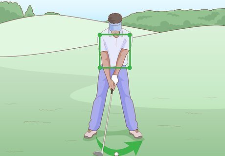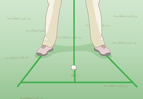 Keep the ball in the middle of your stance. The position of the ball should be the same as it would be when you are hitting with a long iron. The ball will fly higher and longer than when you hit it with an iron, so you may want to adjust the position of the ball to get the type of shot you want. Try keeping the ball slightly farther up in your stance if you want to hit a fade, or a shot that curves slightly to the right (for a right-handed golfer). Because of the larger size of a hybrid’s clubface, it is easier to hit your ball with the center of the clubface that it is with an iron.