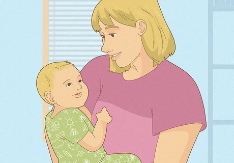 Enjoy bonding with the baby. Holding a baby can be soothing for both you and them. This is a great time to sing to the baby, read to the baby, and keep the baby entertained until it's time for the next feeding, diaper change, or nap. You may need to switch hands from time to time, so remember to always keep one hand under the baby's head as you switch hands. Listen to your baby. Each baby has their own preferences for how they want to be held. If your baby is crying or being fussy, try switching to a different holding position.