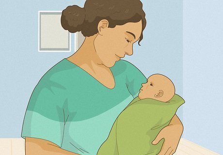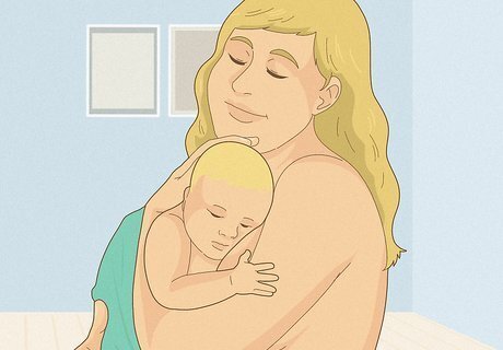 Hold the baby to your chest for skin-to-skin contact. Skin-to-skin contact is an exercise that can help you bond with your baby—and it can also help regulate the baby’s temperature, heartbeat, and breathing. To start, place your baby on your bare chest, with the baby’s chest touching yours. Ensure the baby is only wearing a diaper (and maybe a beanie), and drape a blanket over their back for warmth. Practicing skin-to-skin contact with your baby may even help you feel more confident and self-assured as a parent!