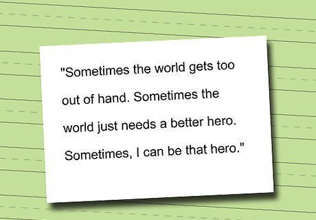 Utilize sentence structures to your advantage. Start off sentences with the same start to add more emotion. Example: "Sometimes the world gets too out of hand. Sometimes the world just needs a better hero. Sometimes, I can be that hero."