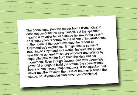 Use at least somewhat decent vocabulary. By using too many simple words, the teacher may not notice it at first, but he will notice your lack of strong vocab. Insert a few good words here and there, and if you're slightly in doubt on what a complicated word means, just don't use it. Misusing a word can rip your essay into pieces in the teacher's mind.