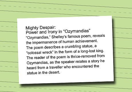 Add emotion. Teachers are human beings too! Any kind of emotion in the intro or conclusion (more likely in the conclusion) will get the teacher to start thinking. Talk about how your pet dog has been your personal hero in your life trials. Or fall back on the ol' reliable--hope. Talk about the hope to one day create a more peaceful world. Talk about the hope to one day reach that elusive goal. Remember, there is always hope. If you talk about something briefly at the very beginning of your intro, refer back to it quickly in your conclusion. It'll remind your teacher you know how to write an essay and you know what you're doing.