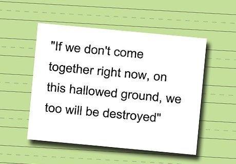 When in doubt, use movie quotes, songs, famous people (i.e. US presidents, class presidents, etc.), or well-known sayings. Either you can outright quote them, such as "If we don't come together right now, on this hallowed ground, we too will be destroyed" (Remember the Titans). Or you can change it up slightly to show off your creativity, such as "The grass actually ISN'T greener on the other side."