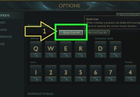 Turn Quick Cast on. An Insec is a very fast series of actions. Using quick cast will make it much easier to accomplish. Once you have loaded into the game, open the settings page by hitting your Esc key on the keyboard. click the button that say “Quick Cast All,” and then click “Okay.”