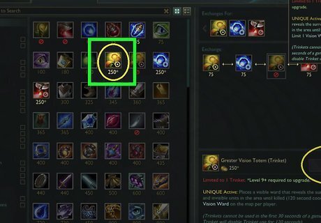 Get some wards. An Insec requires placing a ward and dashing to it. There is a variety of items that equip your champion with wards, but for this guide we will use a warding totem which is a trinket that can be purchased from the shop.