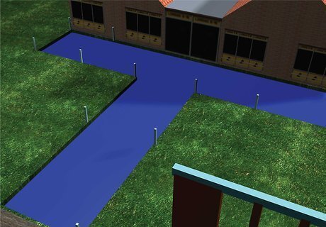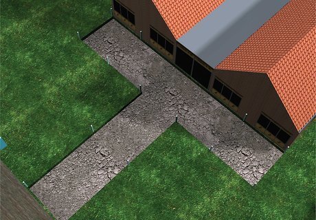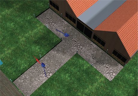 Mark your walkway with stakes so you can work on the area without accidentally moving the original lines. You'll want to mark each side of the walkway with stakes. Tie colored string from stake to stake, making straight lines to use as a guide when digging.