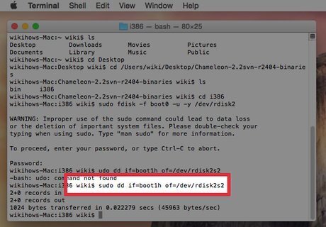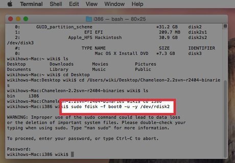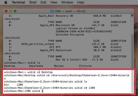 Go to the i386 folder that is inside the folder Chameleon. cd / Users / your name /Desktop/Chameleon-2.0-RC2-r640-bin/i386 /