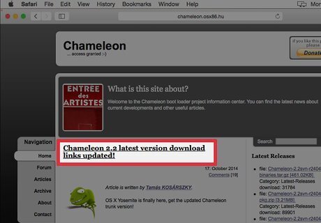 Go to the Chameleon page and download the latest version of Chameleon, once downloaded, unzip it and put it in an accessible location as the desktop.