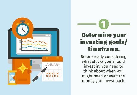 Determine your investing goals/timeframe. Before really considering what stocks you should invest in, you need to think about when you might need or want the money you invest back. If you only have money for the weekend, then maybe you’re better off going to the casino. If you are in the market for mid to long term investing, however, the stock market may be right for you. If you are in it for the long haul, then maybe a mutual fund or IRA is best. If you only have a couple months then maybe Apple or another tech stock is a worthy buy. It all depends on the market when you start.