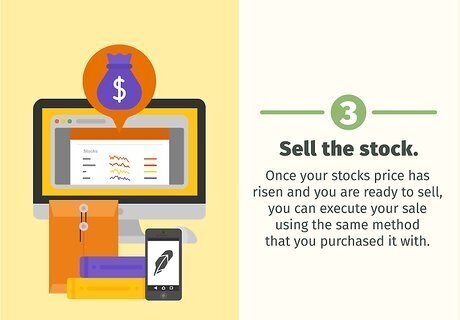 Sell the stock. Once your stocks price has risen and you are ready to sell, you can execute your sale using the same method that you purchased it with. The money will return to your account as withdraw able funds within a few days.