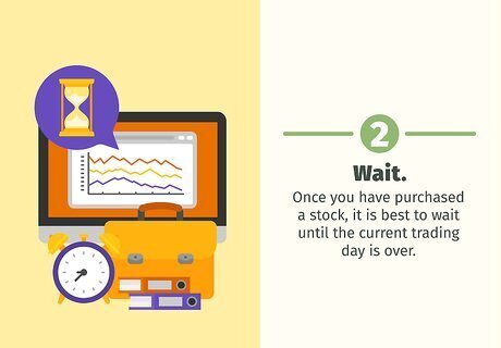 Wait. Once you have purchased a stock, it is best to wait until the current trading day is over. If you buy and sell a stock the same day that is known as a day trade. If you day trade too often you will be flagged as a day trader and will no longer be able to execute trades. Wait until your stocks value has risen enough to make sense (typically 1~2% is good for higher value trades, a little more for lower) and then you will be ready to sell.