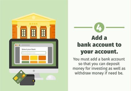 Deposit money. Once you have linked your bank account, you will need to deposit money into your account. Whether you decide you want to purchase a certain stock and then invest that much or would like to just deposit some extra money you have is completely up to you. In general, however, the greater the investment the greater the return.